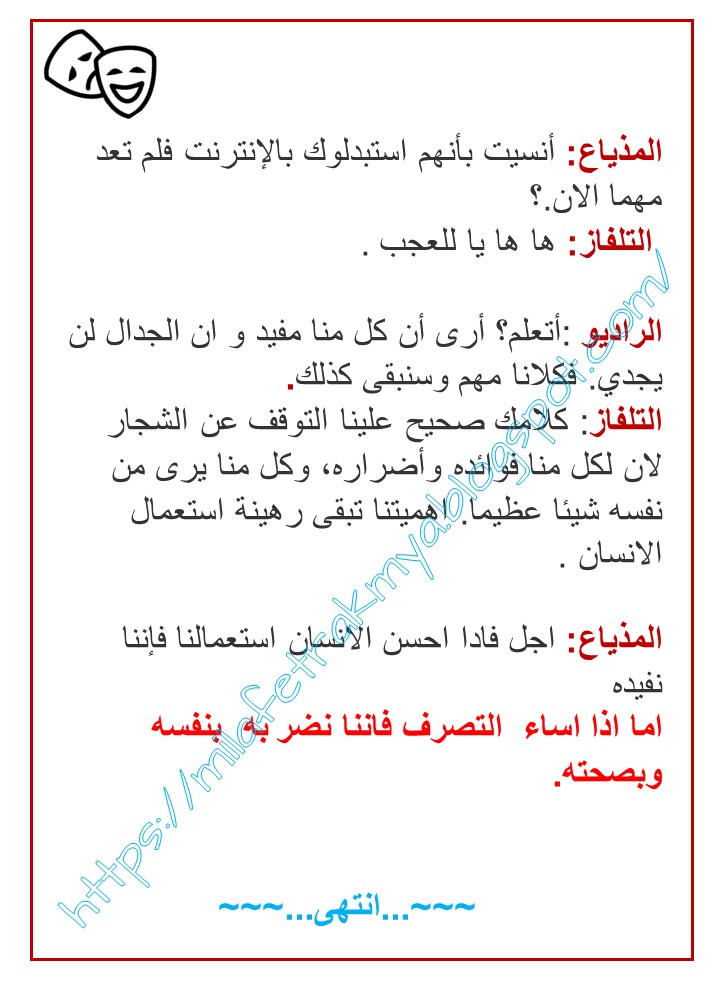 المذياع والتلفاز لهما أهمية كبيرة بالنسبة للمجتمع حيث يعمل على زيادة التوعية والتوجيه والإرشاد للعديد من الفئات مثل الأطفال والبالغين وغيرهما من خلال البرامج المختلفة سواء كانت الثقافية والتعليمية وغيرها هذا إلى جانب الدور الترفيهي من خلال البرامج المسلية والأفلام. الفرق بين التلفاز والمذياع فى سرعه البث. حوار بين التلفاز والمذياع. فريق التحرير نشر في.